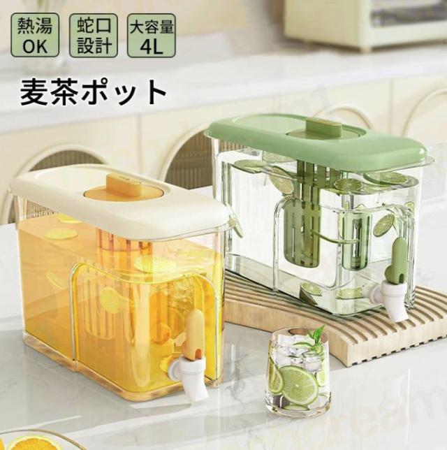 冷水筒 麦茶ポット 蛇口付き ピッチャー 冷蔵庫 4リットル 4L 大容量 ポット 耐熱 洗いやすい ロック付き お茶ボトル 冷水ポット 冷蔵庫 麦茶 ポット 縦横 冷茶