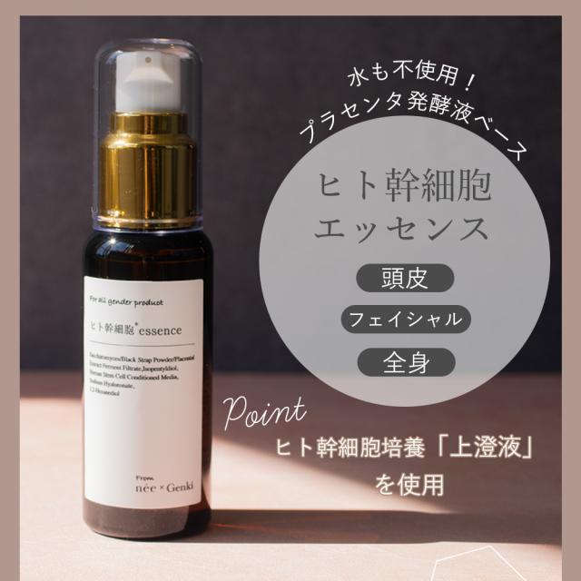 ニーゲンキ エッセンス ヒト幹細胞エッセンス 50ml 水不使用 プラセンタ発酵液ベース 培養上澄み液 上澄液 サイトカイン グロースファクター線維芽細胞に働きかける サッカロミセス (黒砂糖 / プラセンタエキス) 発酵液 ハリ 発毛にも期待 肌のターンオーバー nee Genki