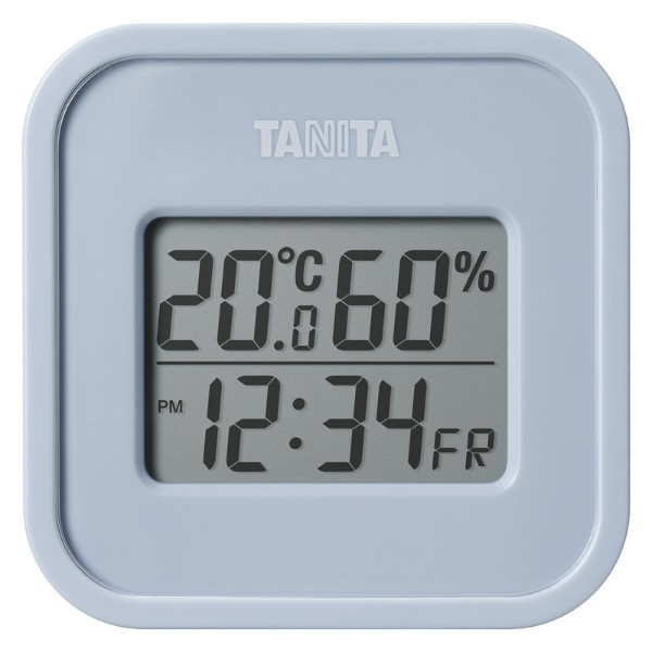 タニタ デジタル温湿度計 小型 温湿度計 デジタル 高精度 温度計 湿度計 時計 付 室温計 赤ちゃん ベビー 小型 温度 壁掛け 予防 熱中症対策 新生活 室内 ブルーグレー