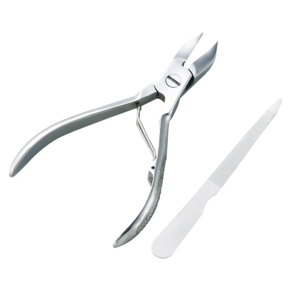 硬い足のつめや、巻きつめに最適なニッパー型つめ切りとつめヤスリのセットです。