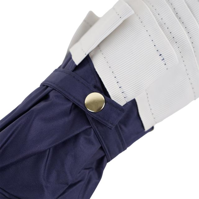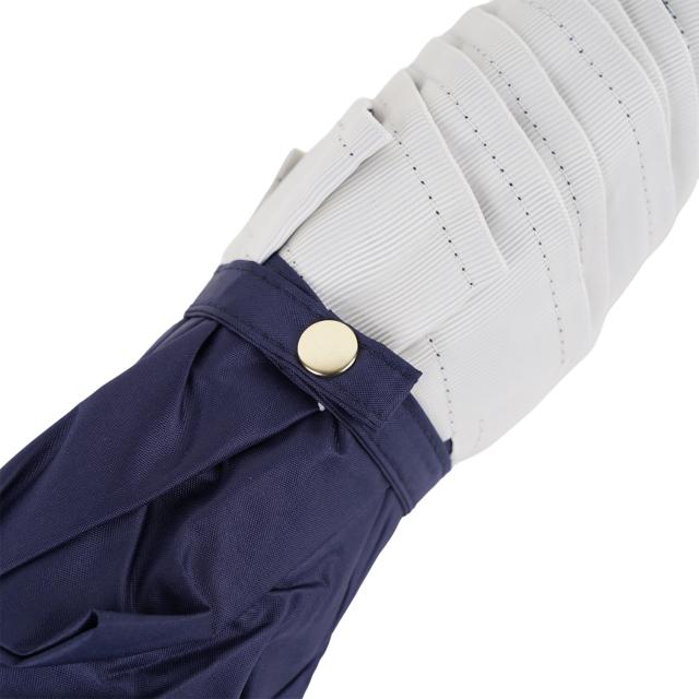 遮光率が優れたpinktrickの日傘。裏地に光が浸透せず、遮熱、遮蔽効果もあり、UVカット率は99.99%以上で、体感温度が下がるのを感じられます。また、UPF50+と高い紫外線保護指数となっており、紫外線からもしっかり守ってくれます。撥水加工があるので、雨の日でも使える晴雨兼用仕様。親骨は軽くて丈夫なグラスファイバーを使用し、弾力性があるので強い日でも安心して使えます。また、開閉時に爪や指を挟まないようにネイルガードが付きます。