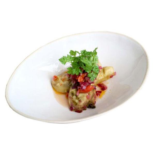 オーブンから出して熱々料理をソーサーにそのまま乗せて食卓へ。