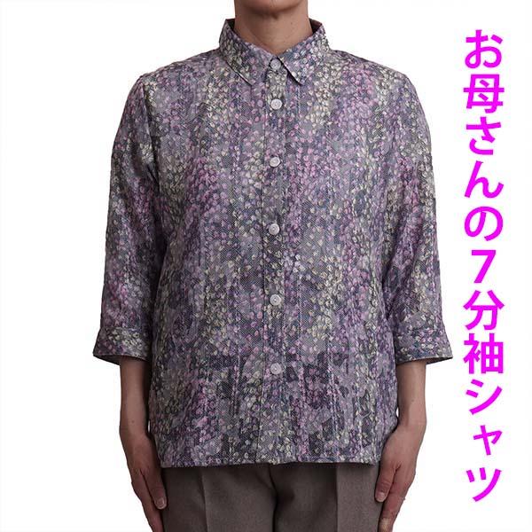 シニア レディース ブラウス 7分袖 シャツ 花柄 60代 ミセス 70代 80代 ゆったり 春夏 母の日 ギフト プレゼント 婦人服 高齢者 0193