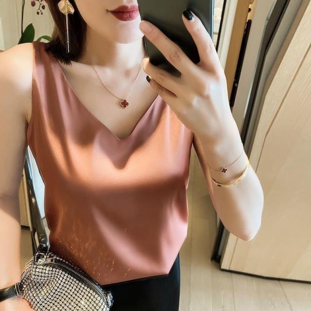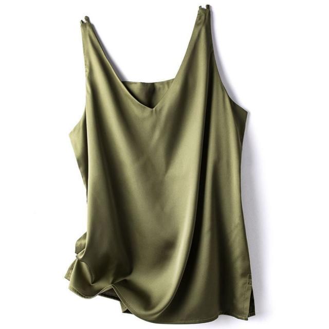 送料無料 アイスシルク キャミソール サテン タンクトップ レディース 大きいサイズ インナー 脇汗 ゆる トップス 袖なし ブラウス ルームウェア 重ね着 肌着 部屋着