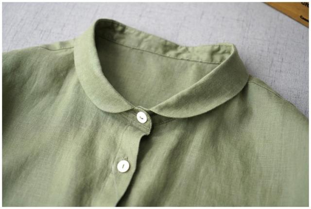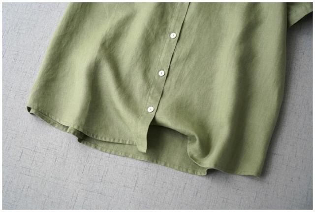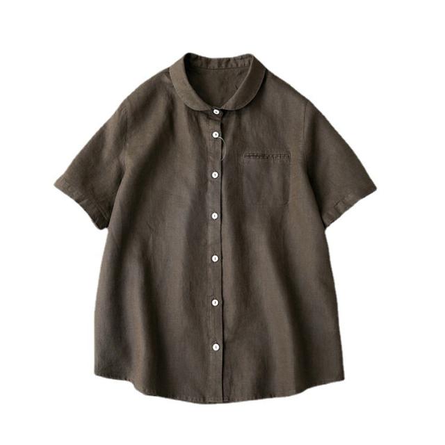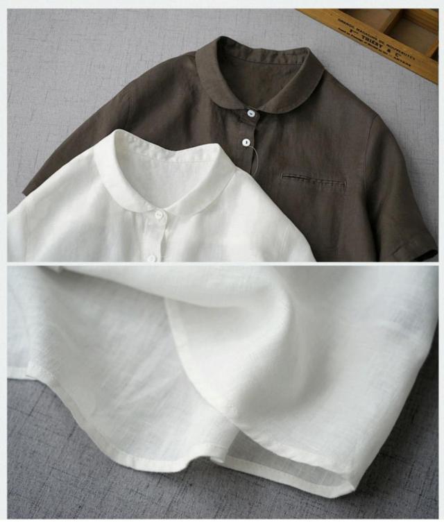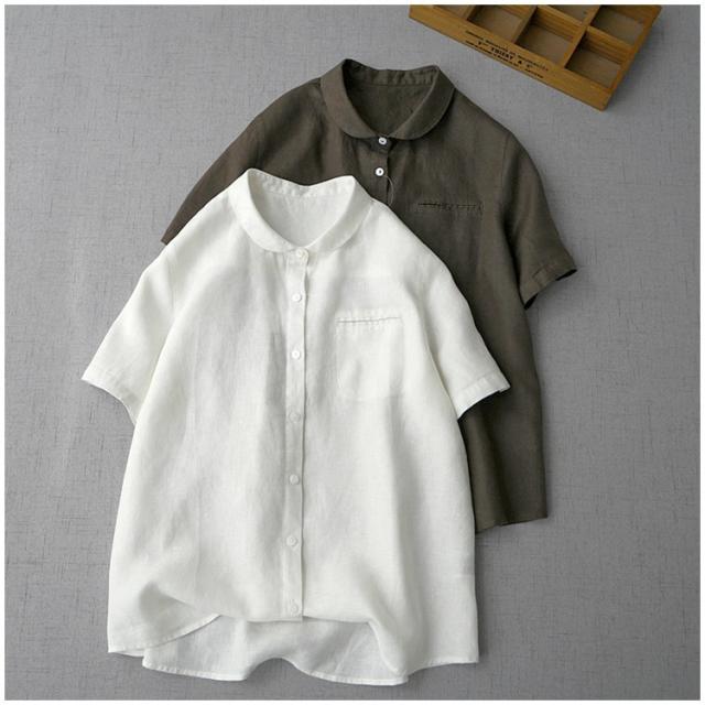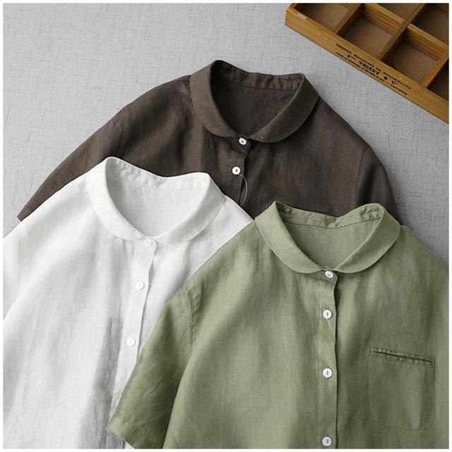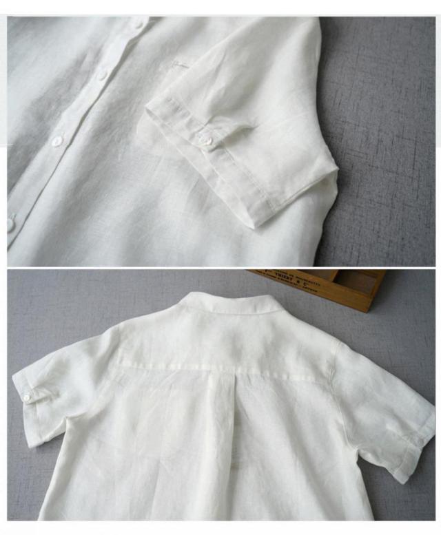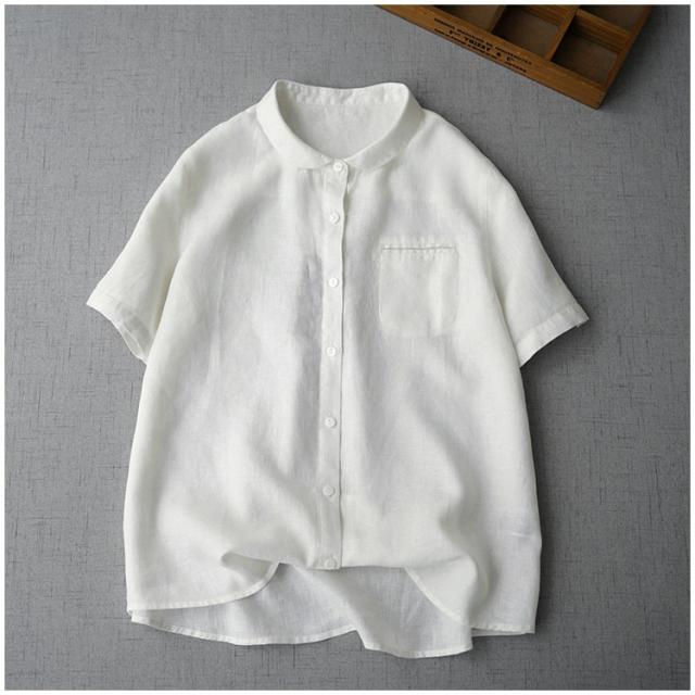 シャツ レディース 半袖 ブラウス 折り襟 綿麻シャツ 襟付き 薄手 前開き トップス 大きいサイズ カジュアル 立ち襟 通勤 通学 シンプル ゆったり