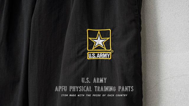 米軍実物の米陸軍(U.S.ARMY)において採用、支給されていたフィジカルトレーニング用のAPFU(ARMY PHYSICAL FITNESS UNIFORM)トレーニングパンツです。米軍兵士がトレーニング時に着用しているパンツの為、激しいトレーニングも想定して製造されています。2000年から使用されてきた IPFU (Improved Physical Fitness Uniform) に代わって、2012年頃から支給された APFU (Army Physical Fitness Uniform) は、前モデルでの改善点がアップデートされたユニフォームとなっています。