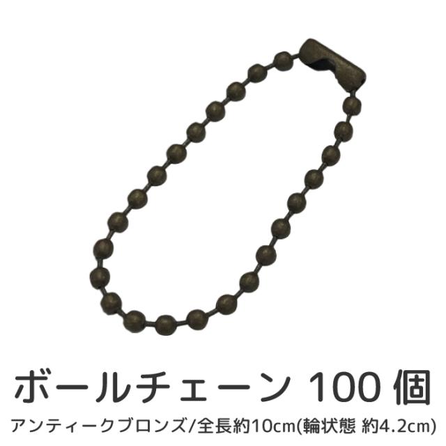 ボールチェーン アンティークゴールド 100個セット 金古美 4.2cm 部材 パーツ 金具 スマホ ガラケー キーホルダー ストラップ 装飾 カスタマイズ 落下防止 fj9044-chain-antique