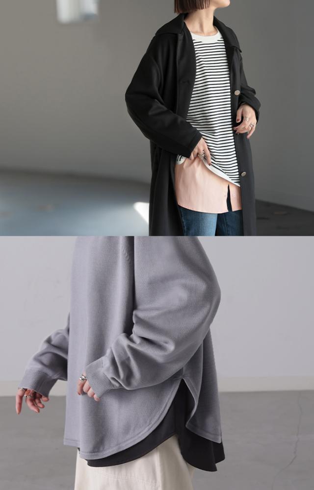 プラスワンで着こなしの幅が広がるレイヤード風付け裾です。