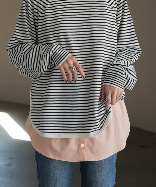 レイヤード 付け裾 シャツ レディース 一部12月下旬入荷 重ね着風 つけ裾 つけすそ ラウンドカット フェイクレイヤード シャツ 腹巻 体型カバー プラス ウエストゴム ウェストゴム お尻が隠れる ゆったり 無地 大きいサイズ 黒 白 ブルー ピンク 春 夏 秋 冬 HUG.U 秋新作