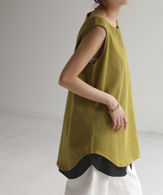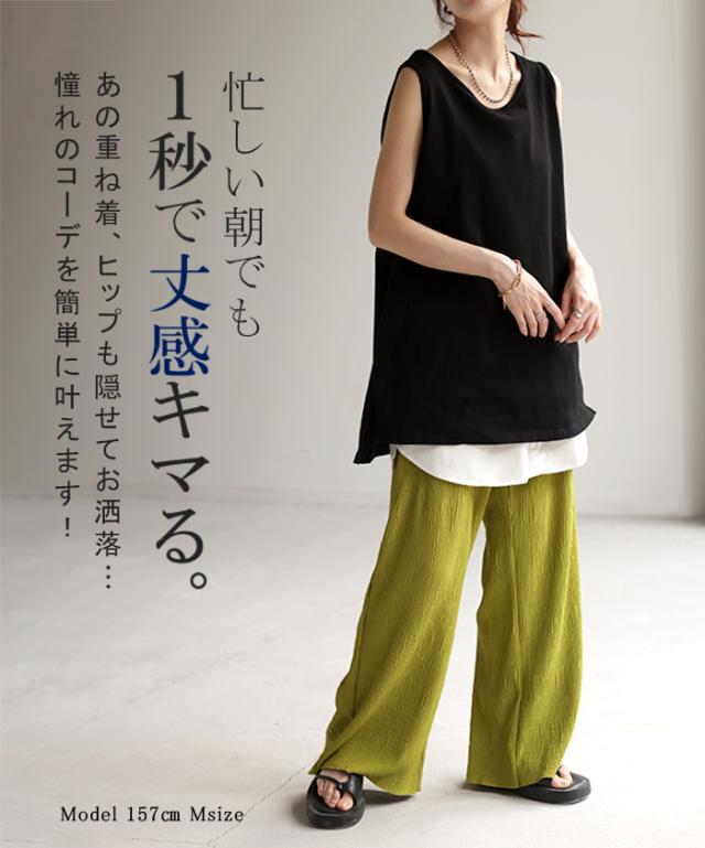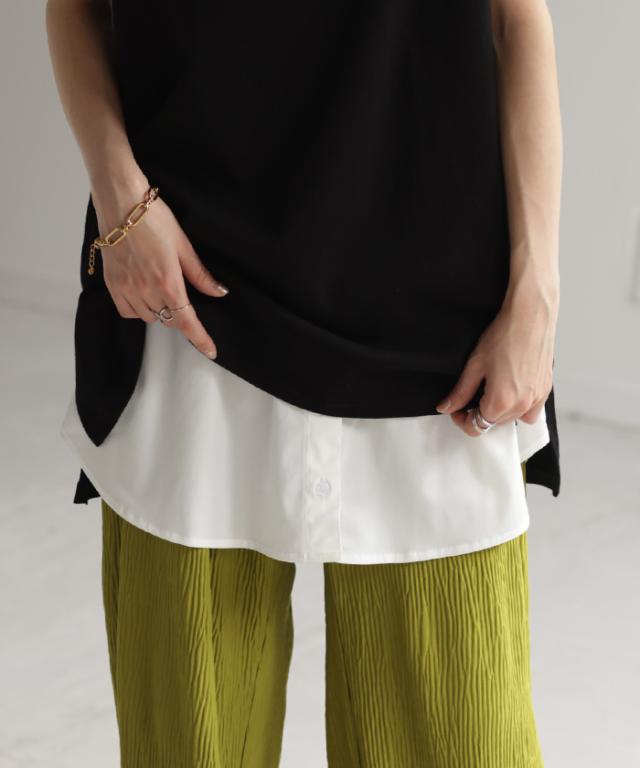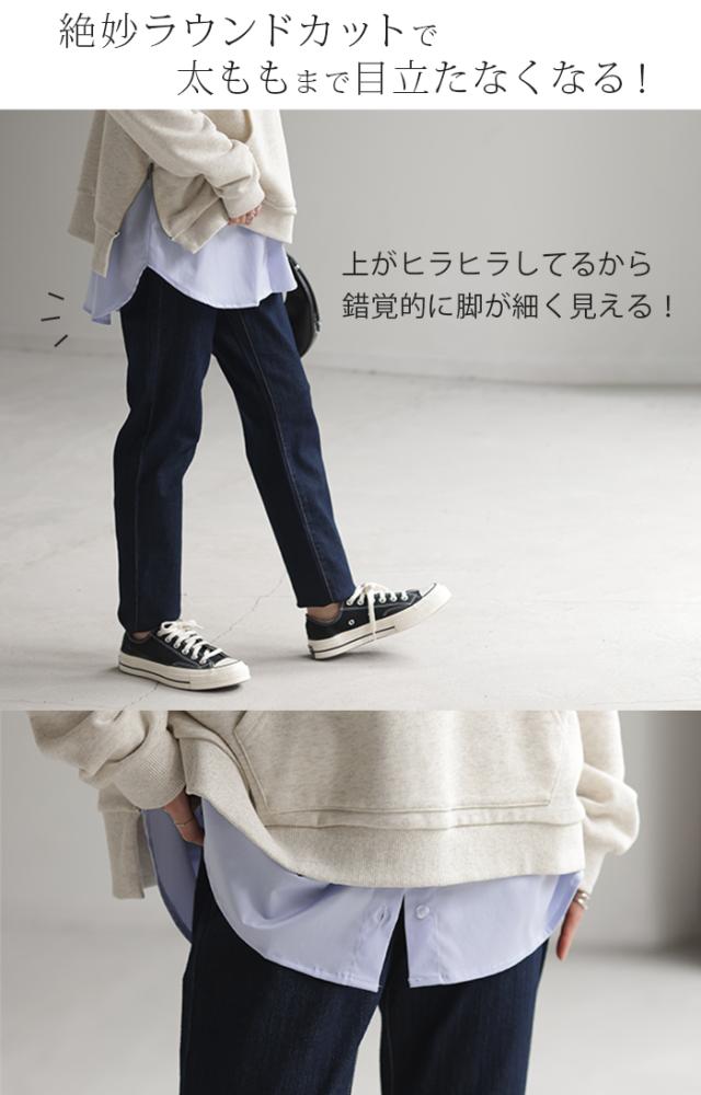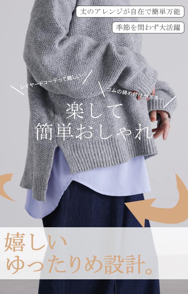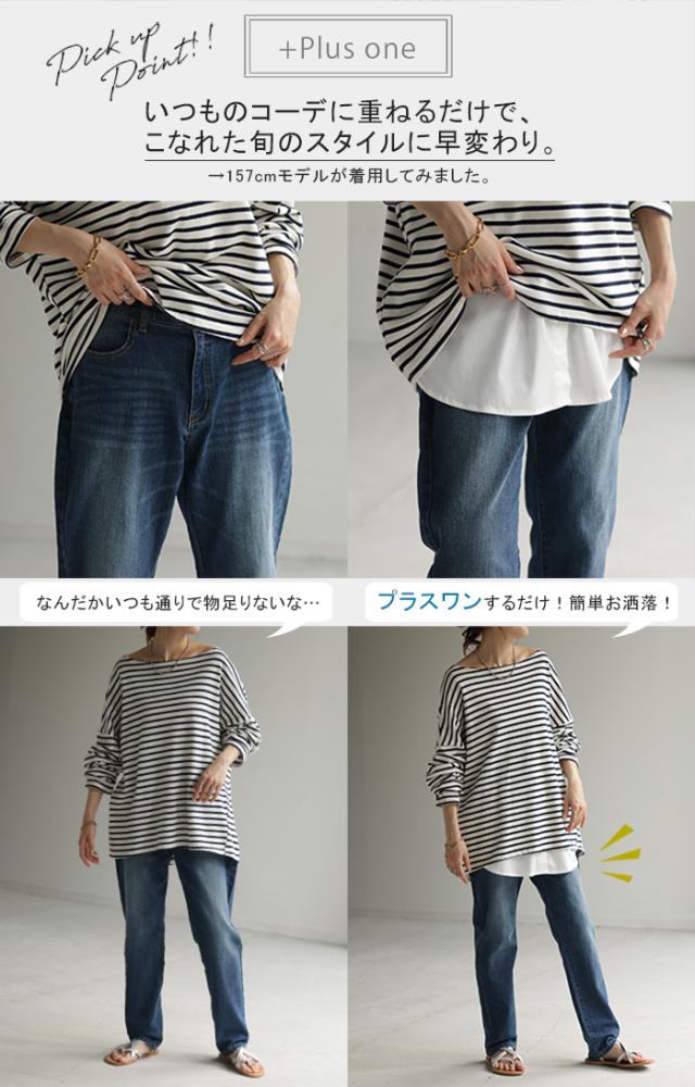 トップスの下に合わせればトレンドの裾レイヤード風に見える便利アイテム。