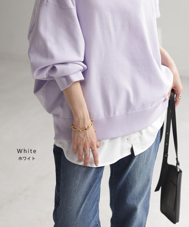 レイヤード 付け裾 シャツ レディース 一部2月下旬入荷 重ね着風 つけ裾 つけすそ ラウンドカット フェイクレイヤード シャツ 腹巻 体型カバー プラス ウエストゴム ウェストゴム お尻が隠れる ゆったり 無地 大きいサイズ 黒 白 ブルー ピンク 春 夏 秋 冬 HUG.U 秋新作