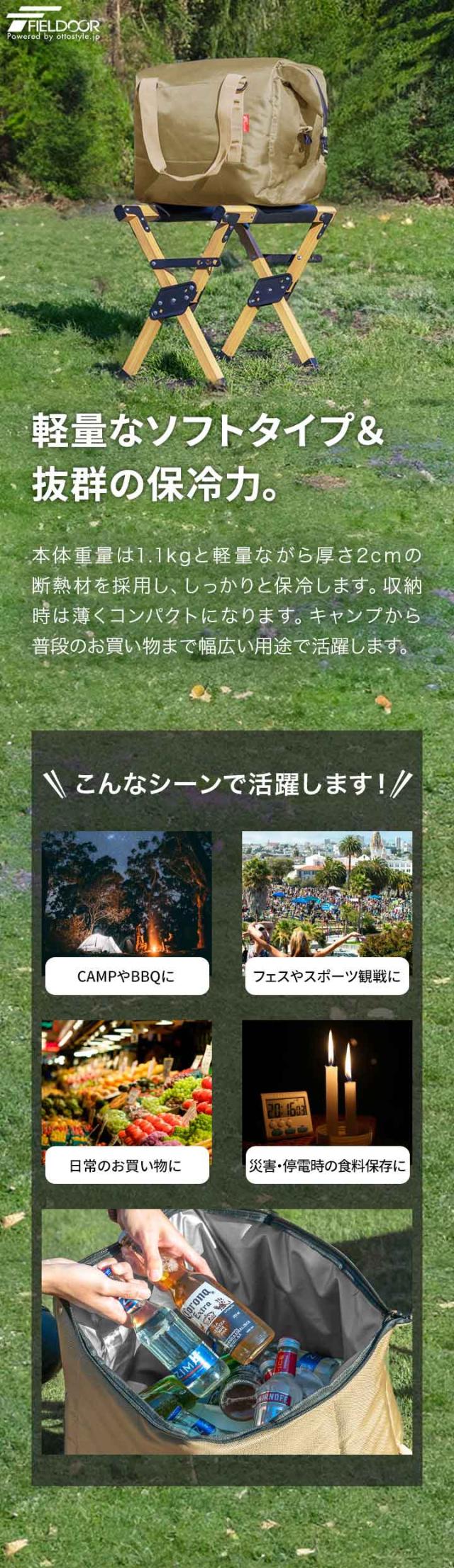 FIELDOOR 保冷バッグ クーラーバッグ 大容量 25L 断熱 5層構造 YKK 止水ファスナー 特大 トートバッグ ソフトクーラー クーラーBOX ノーザンソフトクーラーボックス アウトドア キャンプ 保温バッグ エコバッグ バーベキュー 1年保証 送料無料