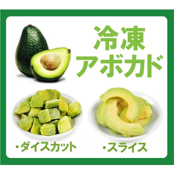解凍してそのままお使い頂ける、アボカドのカットです。