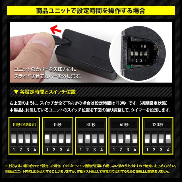 | 夜でもスイッチ操作が快適に! フロントルームランプスイッチイルミネーションキットが新発売! 純正時は点灯しなかったエンジンOFF直後や乗り降り時にスライドドアスイッチが点灯! 夜間にスイッチが見つからない不便さが解消されます! ナビ操作でお好みの点灯時間を設定可能(ナビ設定時間+ユニット設定時間) 配線加工不要!カプラーオン設計 |