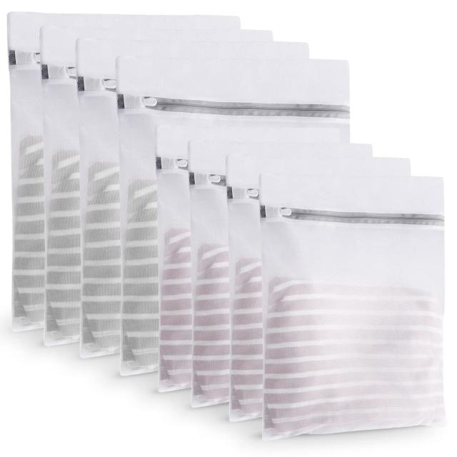 【洗濯ネット8枚セット】角型洗濯ネット×8個入りです:50*40cm×4枚、40*30cm×4枚。本商品は洗濯専用の洗濯ネットとしてのほか、旅行や出張時の衣類の分類袋や家の収納やおもちゃの分類などにも使えます。シャツ、インナー、下着、ショーツ、ブラウス、ズボン、靴下、セーター、コート、スカート、セーター、ジャケットなどは洗濯袋を使うことができます。※ファスナーを「チェーンヘッド保護装置-ゴムひも」に上げて、また洗濯機に入れて。洗濯袋に入れる容量は2/3以内がベストです、洗濯機内のスペースはあまりいっぱいにしないほうがいいです。洗濯前に服のポケットの中の小物をチェックして、損失を与えないようにしてください。