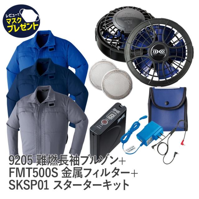 Asahicho 旭蝶繊維 アサヒチョウ 作業着 難燃長袖ブルゾン 金属フィルター フルセット 空調服 フルセット 9205 SKSP01 パワーファン 春 夏 S〜6L 8サイズ 難燃素材 暑さ対策 薄型 軽量 大風量 高効率 長寿命