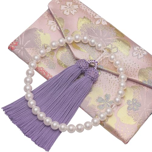 通雲念珠屋 数珠 女性用 本水晶 星月菩提樹 念珠 葬式 葬儀 お通夜 略式 じゅず 数珠袋付き すべての宗派で使える (貝パール/藤)