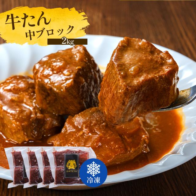 牛タン 牛たん タン中 ブロック 煮込み用 約2kg 約500g×4袋 御歳暮 仙台 焼き方 レシピ付き 牛肉 焼肉 熟成 極味 たん タン 芯たん 宮城県 BBQ キャンプ アウトドア お取り寄せ ダテヤ 特選 お歳暮