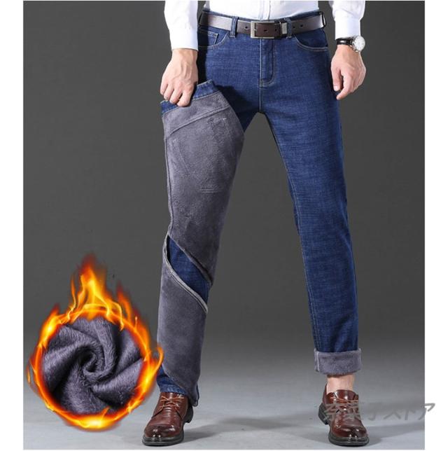 激安 デニムパンツ メンズ ボア 裏起毛 通学 ロング丈 ストレッチ 厚手 紳士服 ジーンズ ゆったり ストレッチ ボトムス 通勤 秋冬