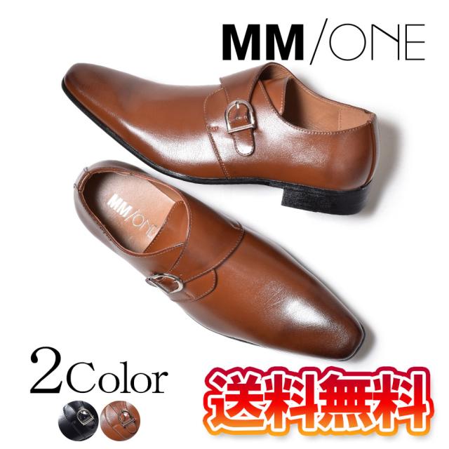 送料無料 ビジネスシューズ メンズ モンクストラップシューズ プレーントゥ ロングノーズ 3E EEE ブラック 黒 ブラウン フォーマル ビジネス 通勤 会社 靴 冠婚葬祭 結婚式 シューズ 革靴 ブランド MM/ONE エムエムワン