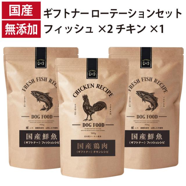 ギフトナー ローテーションセット フィッシュレシピ ×2 チキン レシピ ×1 国産 ドッグフード 無添加 鶏 名古屋コーチン 鹿 ベニソン 全年齢 GIFTNER 犬