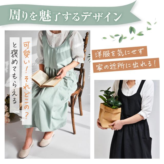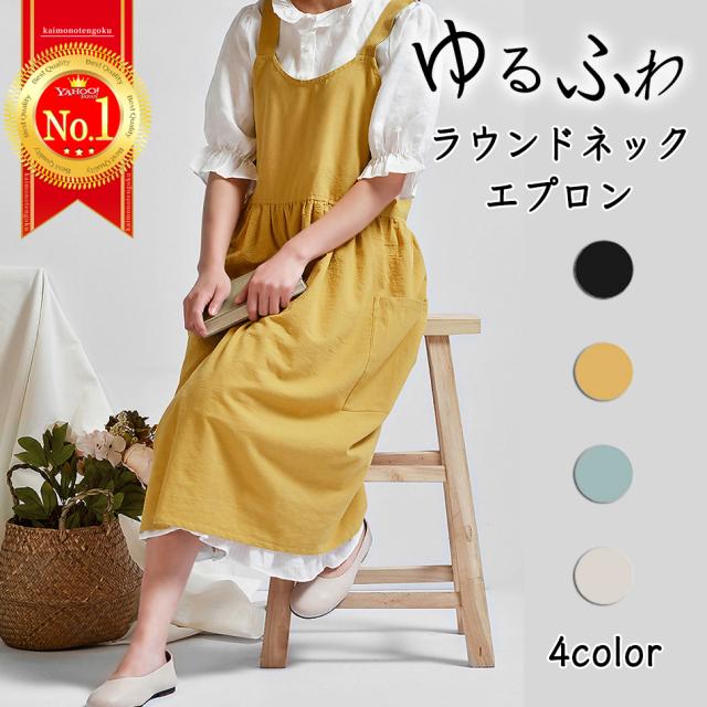 エプロン おしゃれ ラウンドネック ワンピース シンプル ナチュラル コットン 家事 保育士 かぶり ポケット 綿 100% 北欧 無地 ギフト