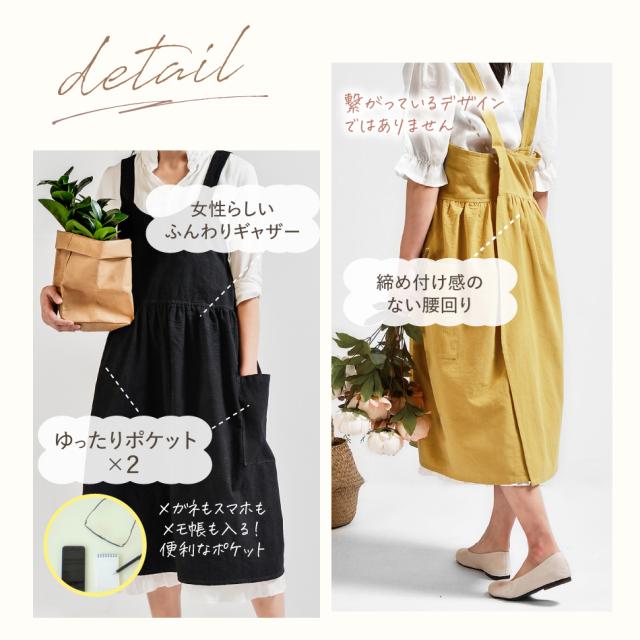 - ミントを購入。形もデザインも使い勝手も良く気に入りました。少し生地が薄いですが可愛いエプロンです。