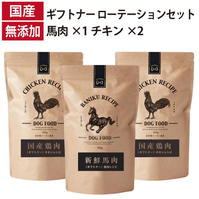 ギフトナー ローテーションセット 馬肉レシピ ×1 チキン レシピ ×2 国産 ドッグフード 無添加 鶏 名古屋コーチン 馬肉 馬刺し 全年齢 GIFTNER 犬