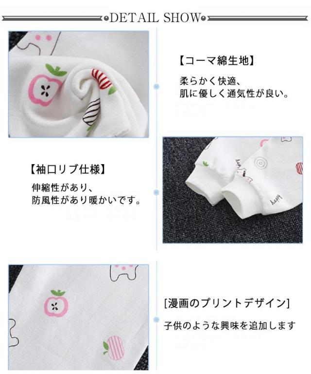 | 【コーマ綿生地】柔らかく快適、肌に優しく通気性が良い。 【袖口リブ仕様】伸縮性があり、防風性があり暖かいです。 [漫画のプリントデザイン]子供のような興味を追加します 【細配線】丈夫で見た目も良い 【ハイウエストデザイン】お腹を守るハイウエストで、お子様のお腹を冷えやすいから守ります。 【両用デザイン】オープンパンツとしても使用可能 | |