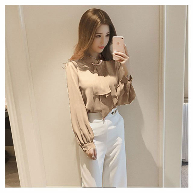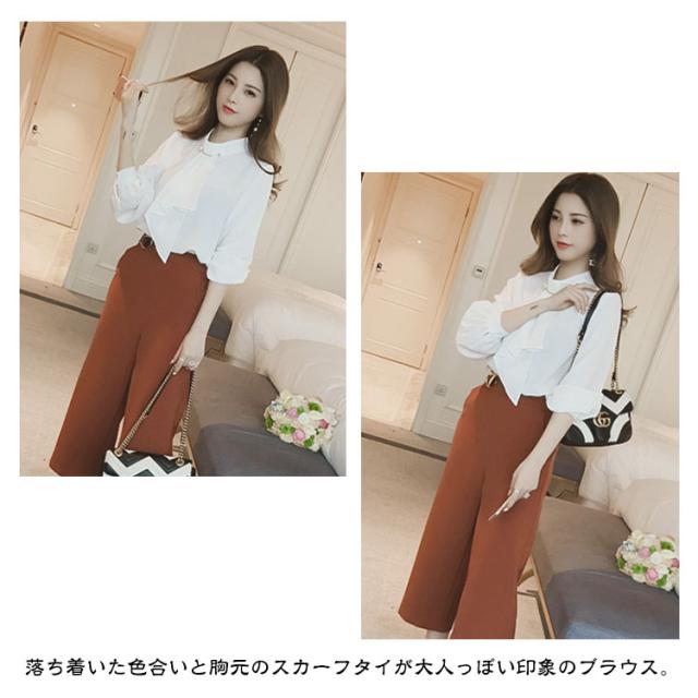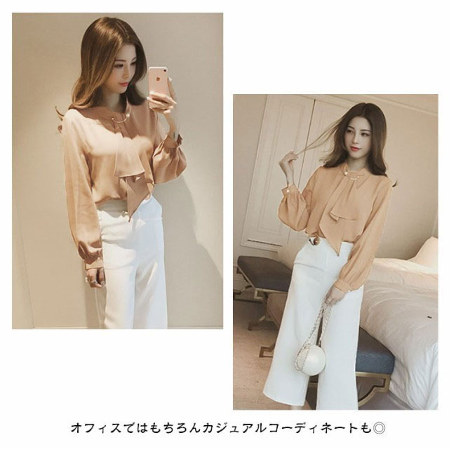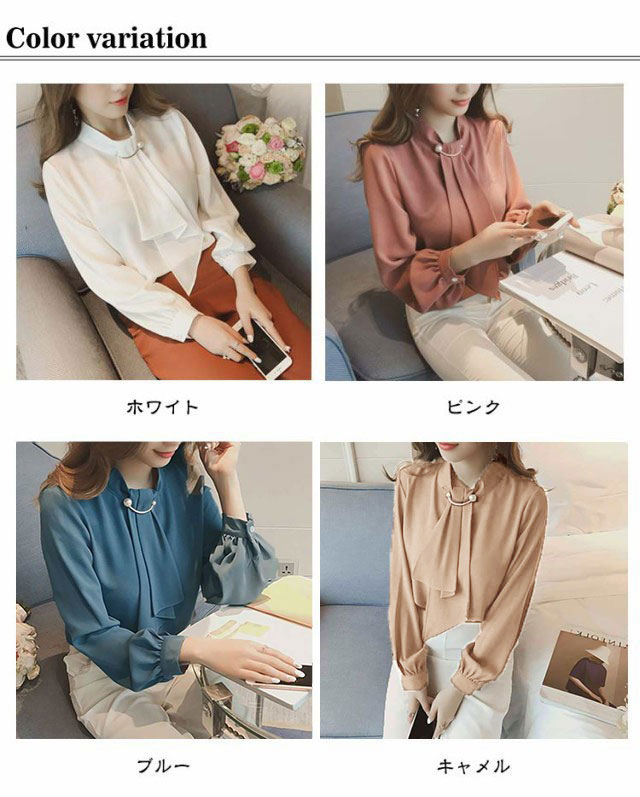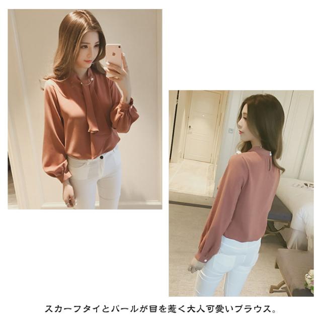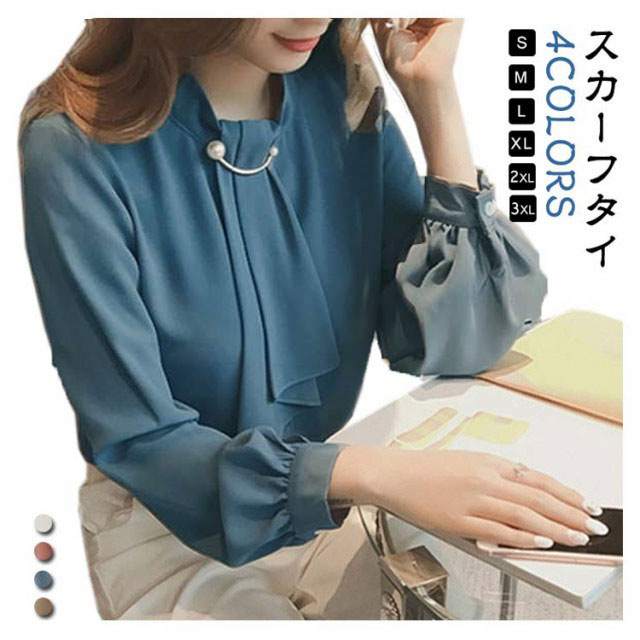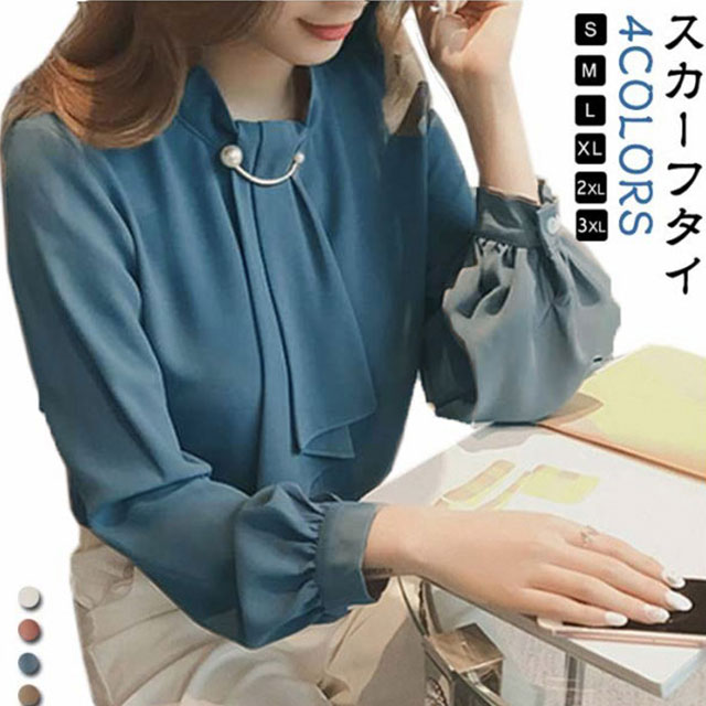 | 【スカーフタイ】【S〜3XL】【4COLORS】 スカーフタイとパールが目を惹く大人可愛いブラウス。 落ち着いた色合いと胸元のスカーフタイが大人っぽい印象のブラウス。 一枚着としてはもちろん、ジャケットのインナーでも使えるので、 オフィスではもちろんカジュアルコーディネートも◎ | |