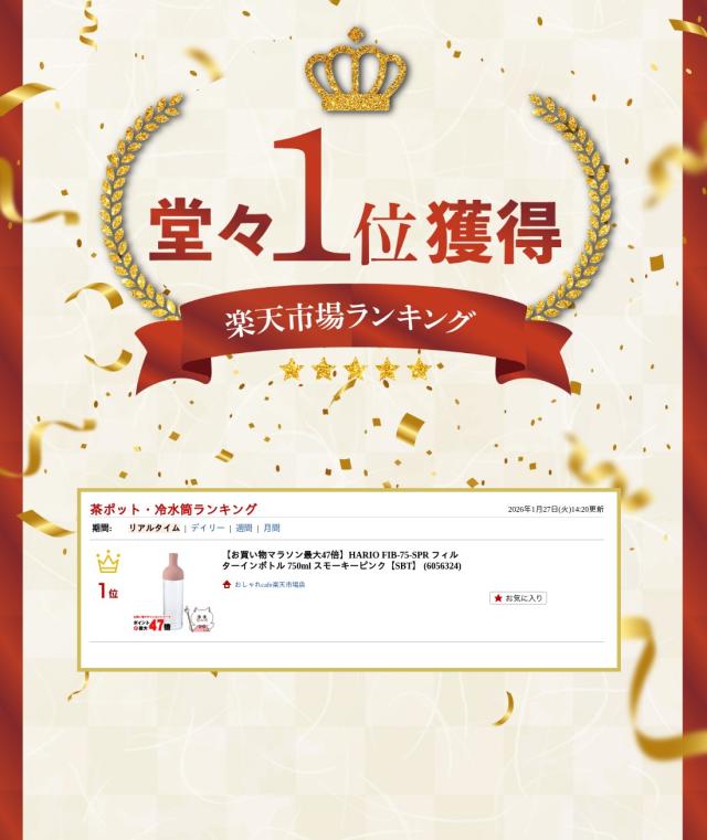 【お買い物ラリー 最大34%還元】【楽天ランキング1位】HARIO FIB-75-SPR フィルターインボトル 750ml スモーキーピンク [送料無料] (6056324)
