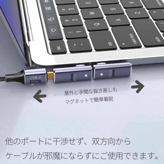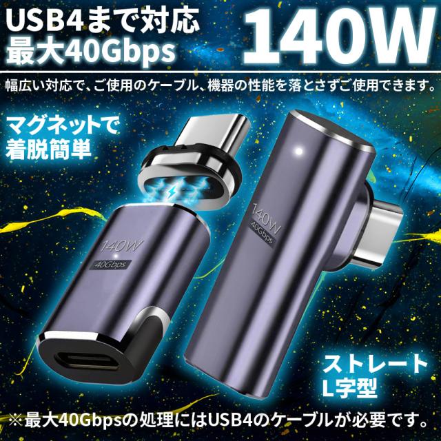USB4.0 type c to type c マグネット 4個セット アダプター 2種類 選べる ストレート L字 L型 オス メス 左右 90° LED PD 140W/5A 急速充電 40Gbps高速データ転送 8K 60Hz 映像出力 タイプc type-c 90度 オス メス USB C コネクター スリム 軽量