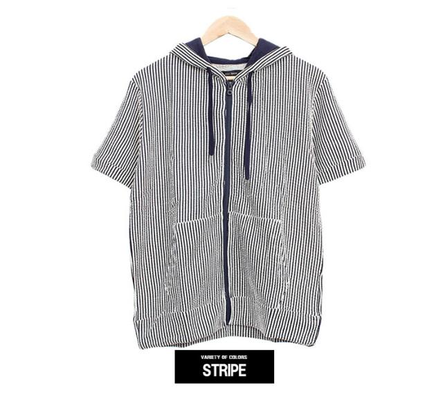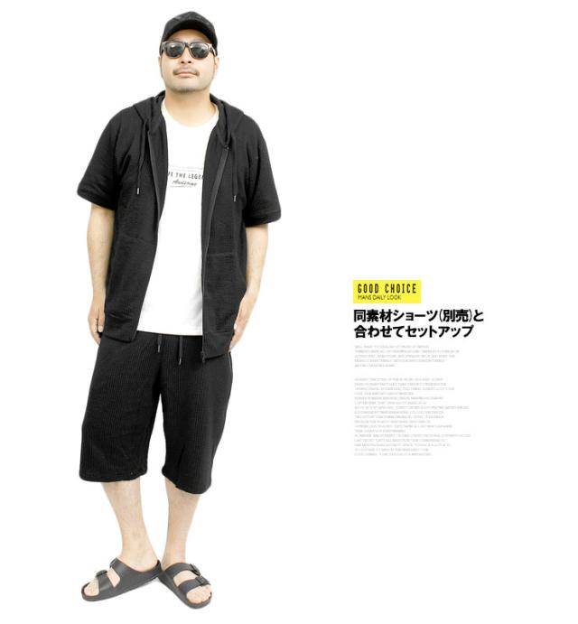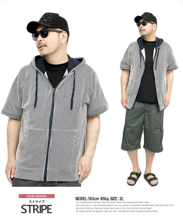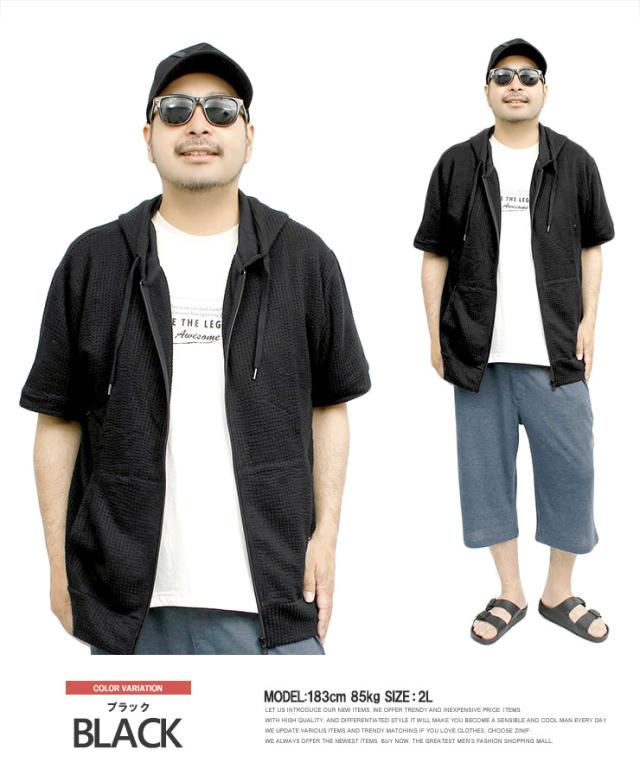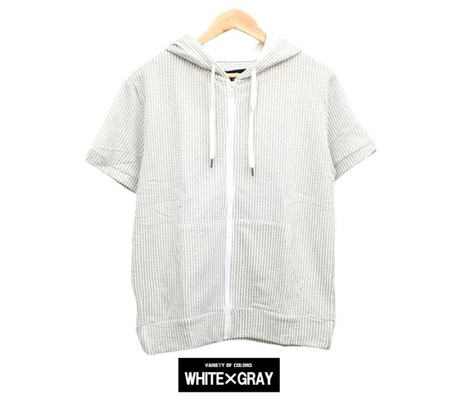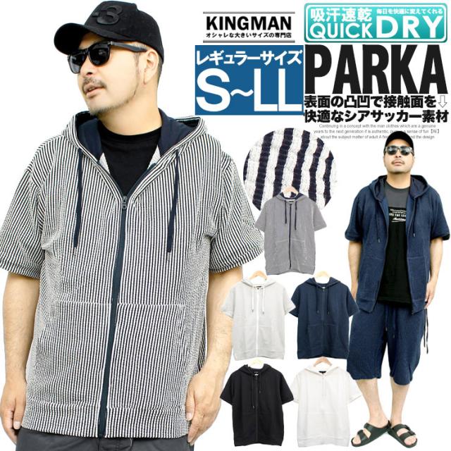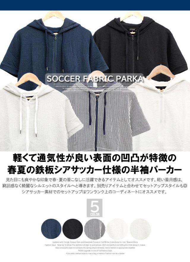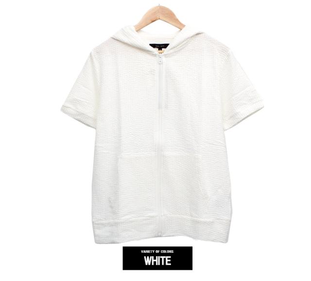 【メール便で送料無料】 半袖 パーカー メンズ ジップアップ シアサッカー ストレッチ サマージャケット ルームウェア 部屋着 Tシャツ カットソー ブルゾン アウター 薄手 ジップ ストリート系 ワークマン プラス