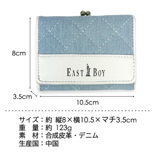 キッズ 財布 女の子 三つ折り財布 ebs-0192 EAST BOY イーストボーイ デニムキルト 三つ折り財布 がま口財布 ミニ財布 コンパクト財布 さいふ かわいい おしゃれ シンプル 女の子 女子 ガールズ 小学生 中学生 高校生 小学校 低学年 高学年 旅行 修学旅行 通学 通塾 通勤