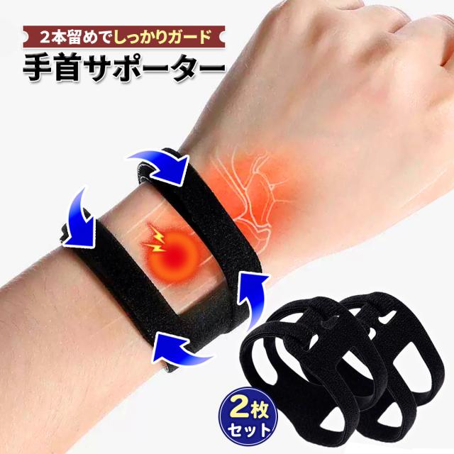 TFCC 手首サポーター 2枚セット ブラック フリーサイズ 両利き用 スポーツ アウトドア デスクワーク 家事 育児 ピンポイントでサポート