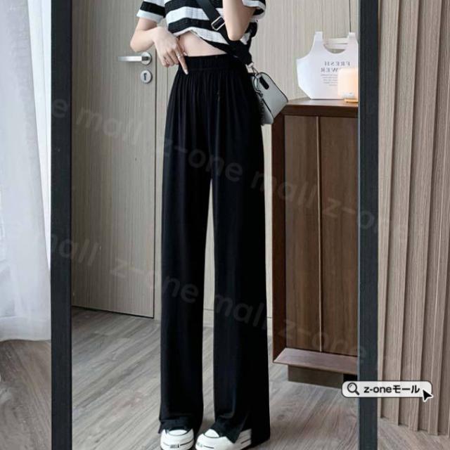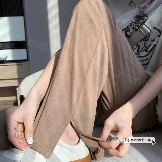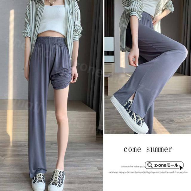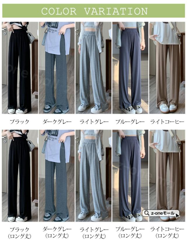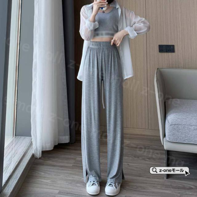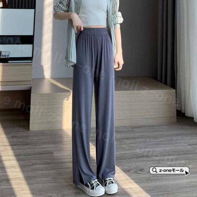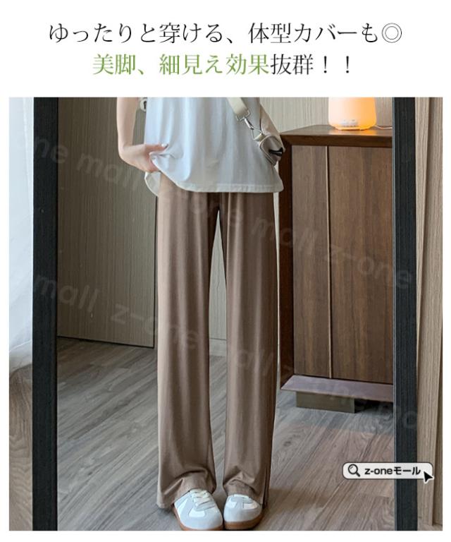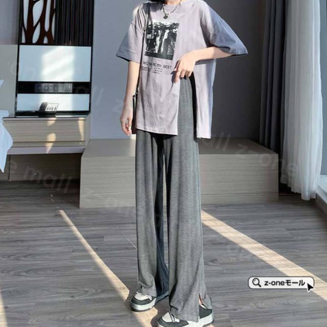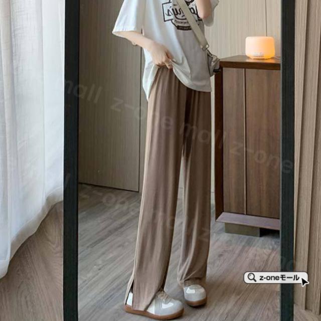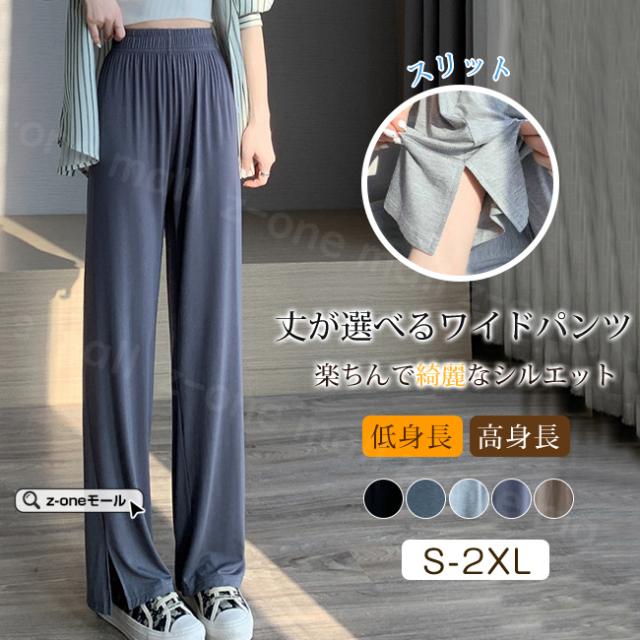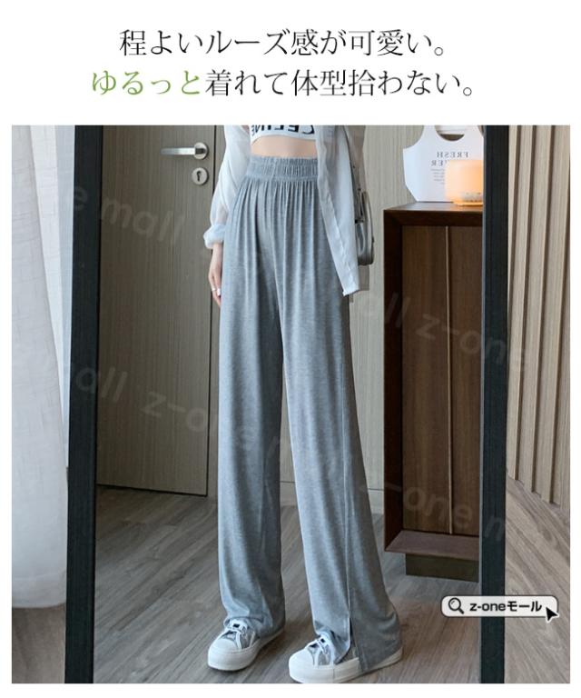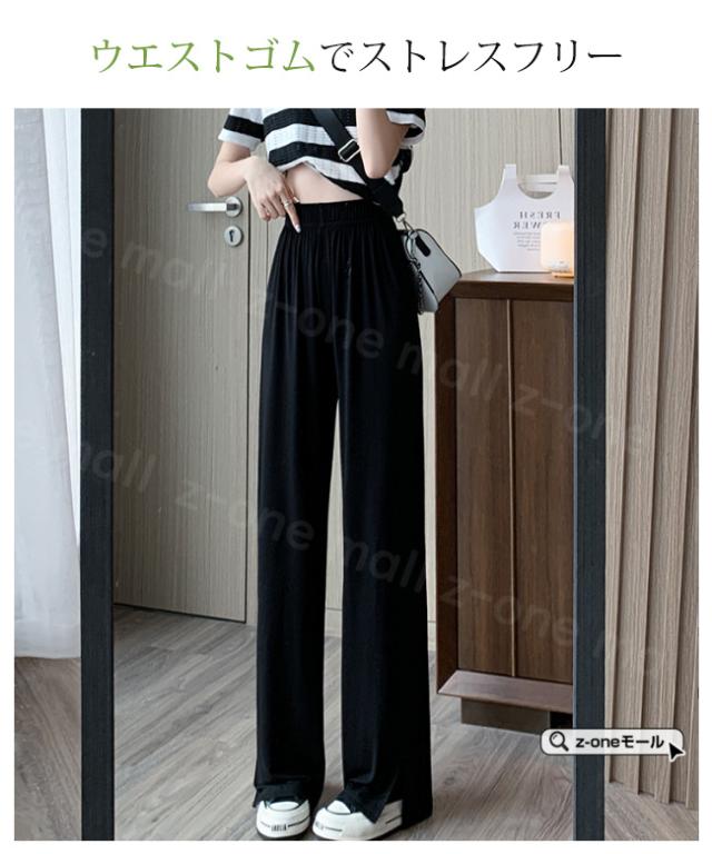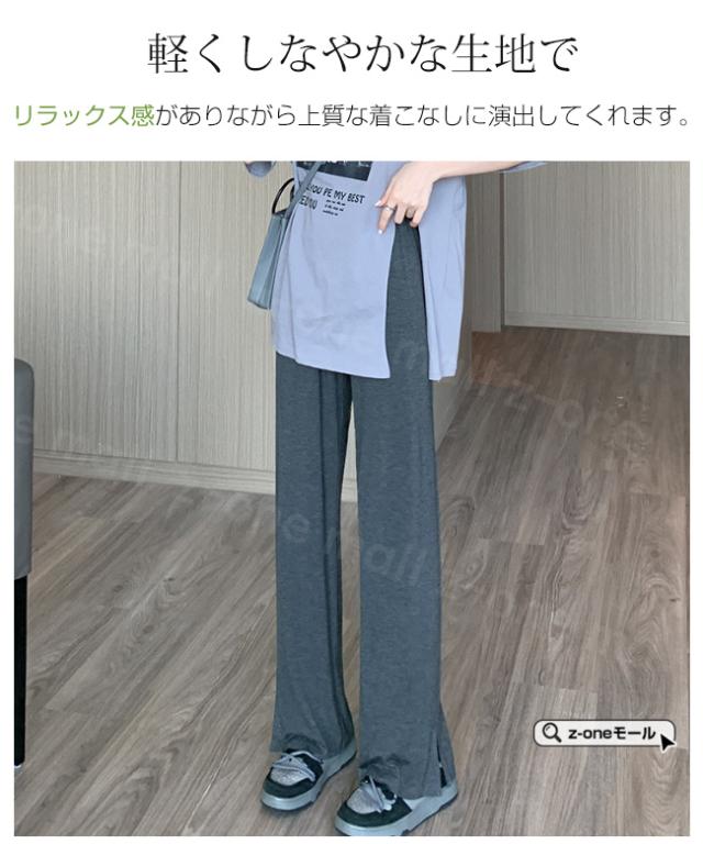 ワイドパンツ スリット 春新作 送料無料 ストレートパンツ レディース パンツ ロング丈 脚長 美脚 楽ちん ウエストゴム ガチョウパンツ カジュアル 体型カバー ズボン スウェットパンツ 入学式 入園式