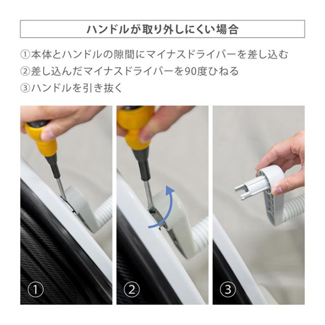 ハンドルはホースリール本体を押さえて引き抜く事が可能です。
