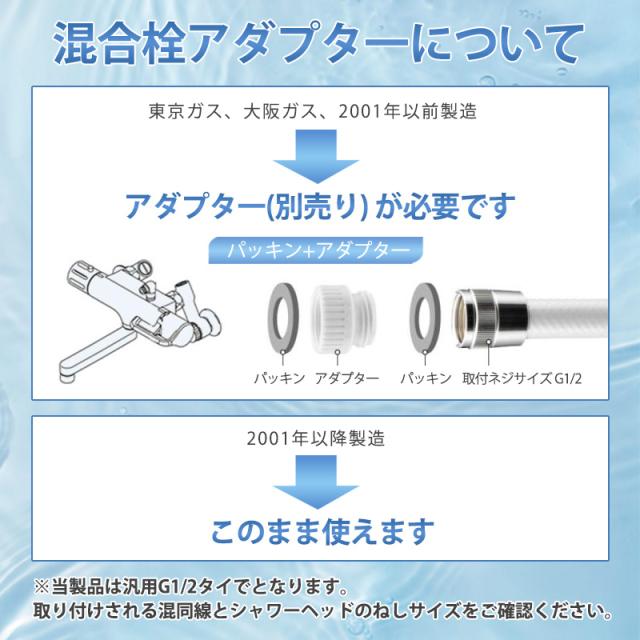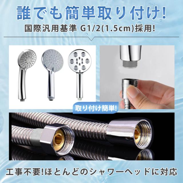 市販のシャワーホースに適合。
