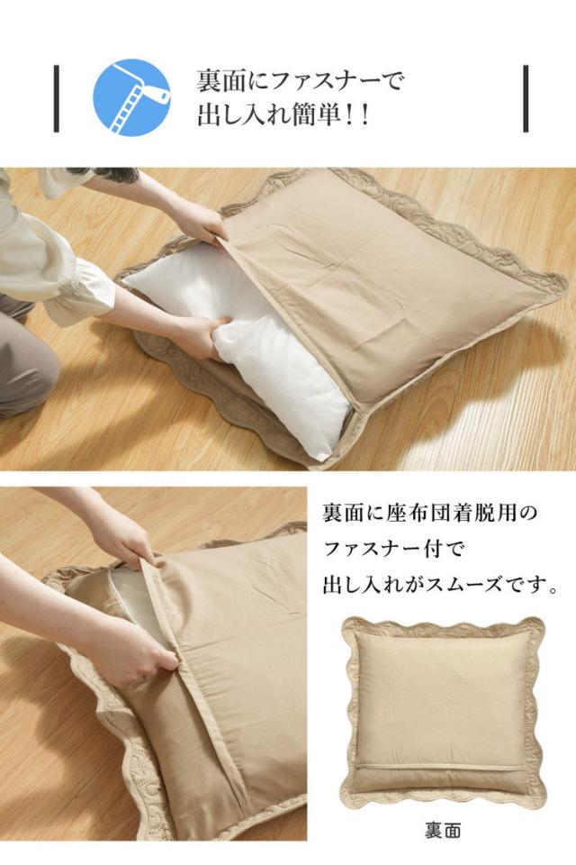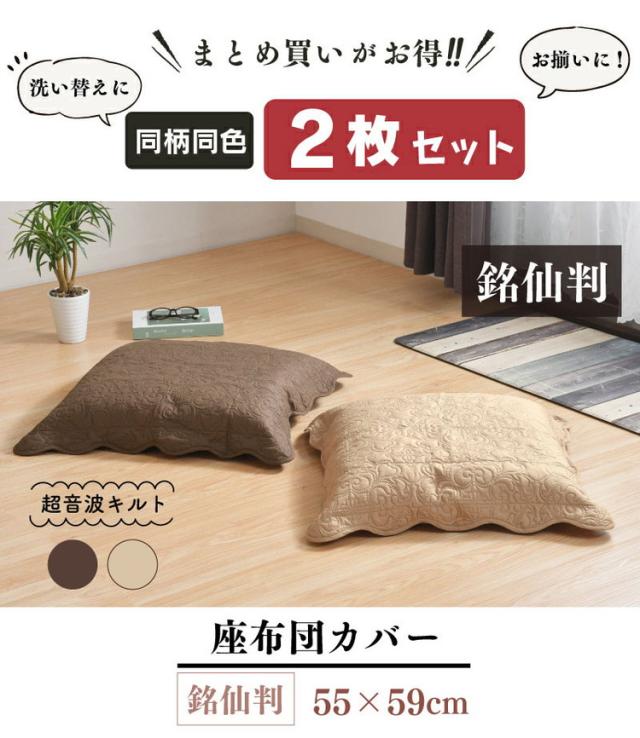 座布団カバー 2枚セット 55×59cm 超音波キルト 銘仙判 座ぶとんカバー ザブトンカバー 大人可愛い フリル 超音波キルト柄 丸洗いOK インテリア おしゃれ 北欧 オールシーズン シンプル コンパクト(代引不可)【送料無料】