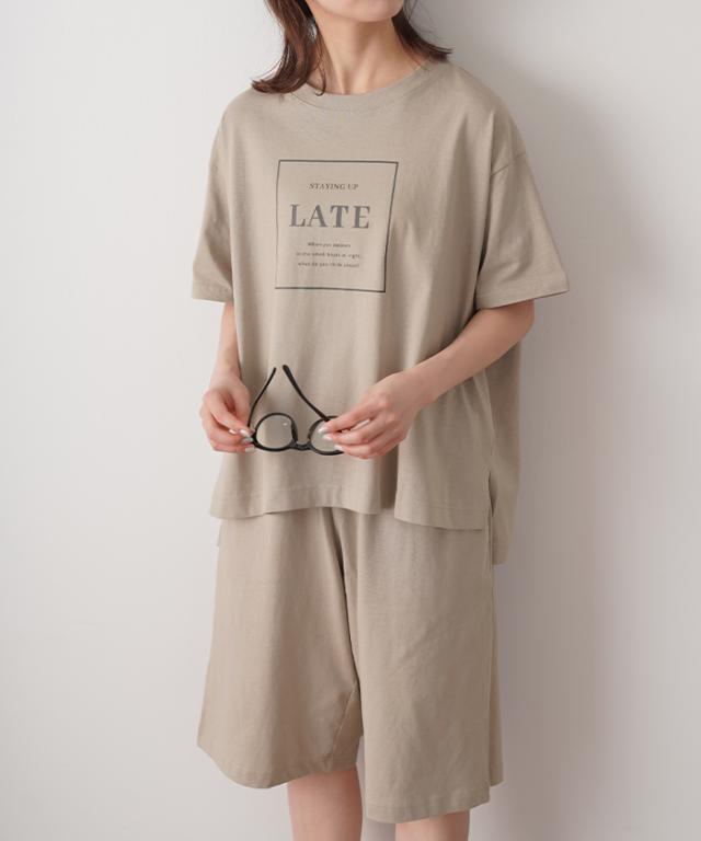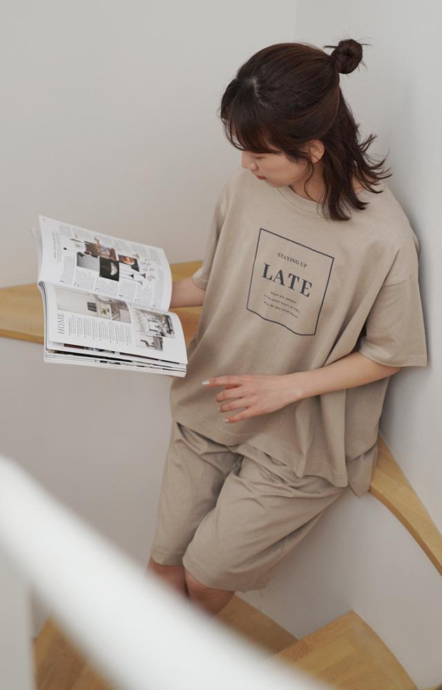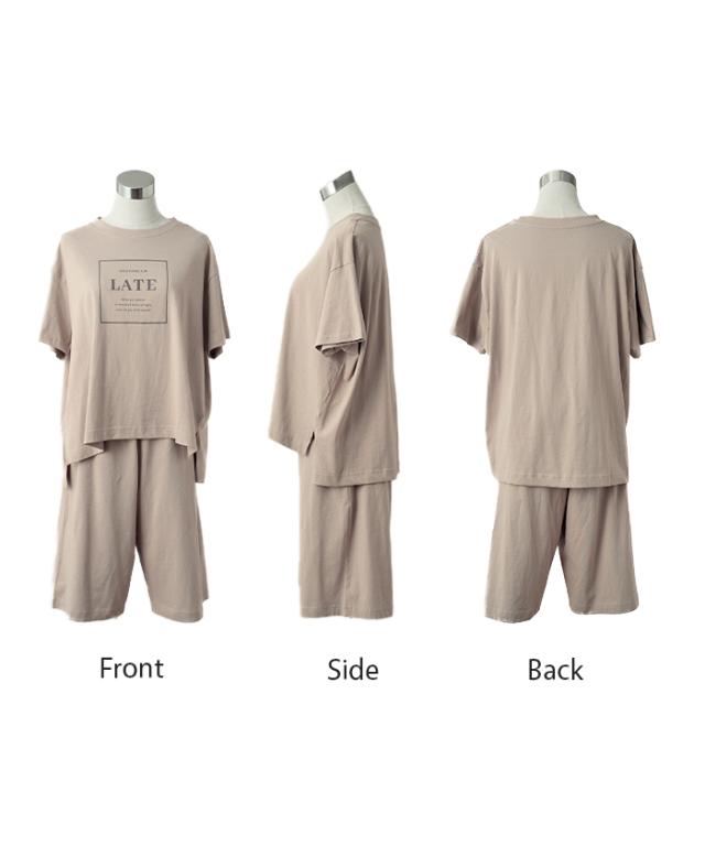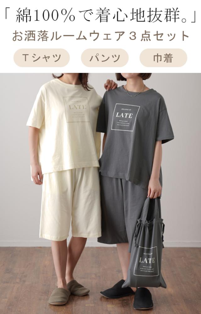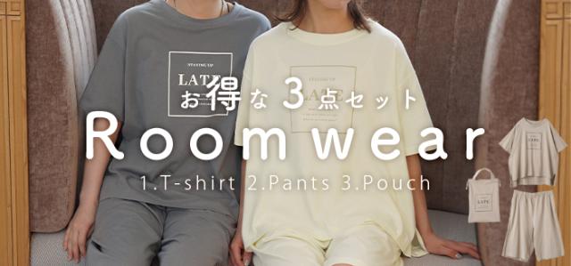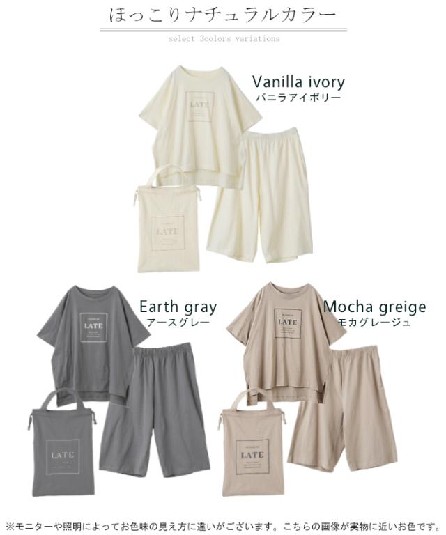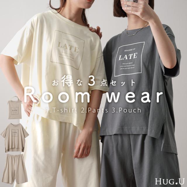 ルームウェア パジャマ 3点セット セットアップ レディース 綿100% ルームウエア 部屋着 ワンマイルウェア 旅行 Tシャツ 半袖 ハーフパンツ ゆったり ロゴ お泊り 体型カバー 大きいサイズ 白 グレー ベージュ 可愛い 吸水速乾 春 夏 秋 冬 HUG.U 秋新作