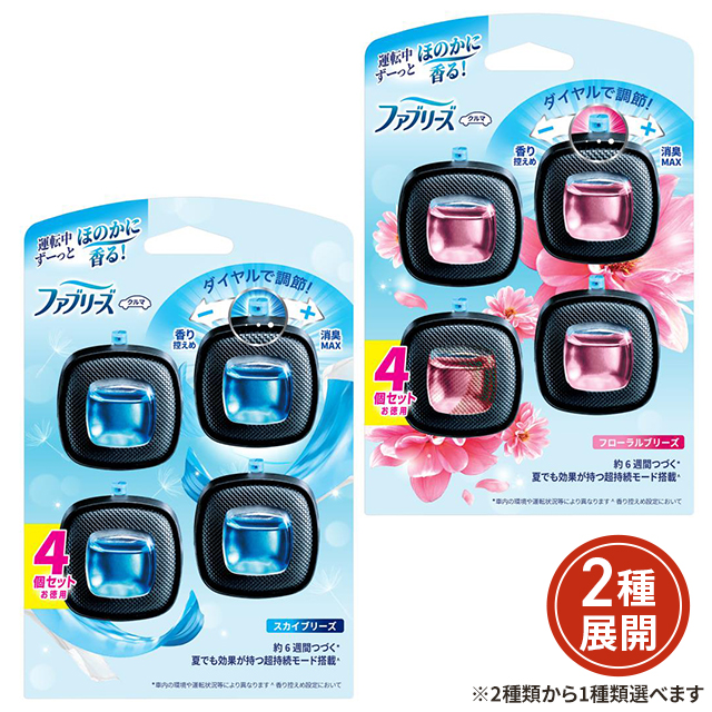 商品名 ファブリーズ イージークリップ 2.5mL×4個パック ブランド ファブリーズ メーカー P&G 香り スカイブリーズ、フローラルブリーズ 容量 1パック(2.5mL×4個) 成分 香料、色素 生産国 中国 JANコード 4987176297327