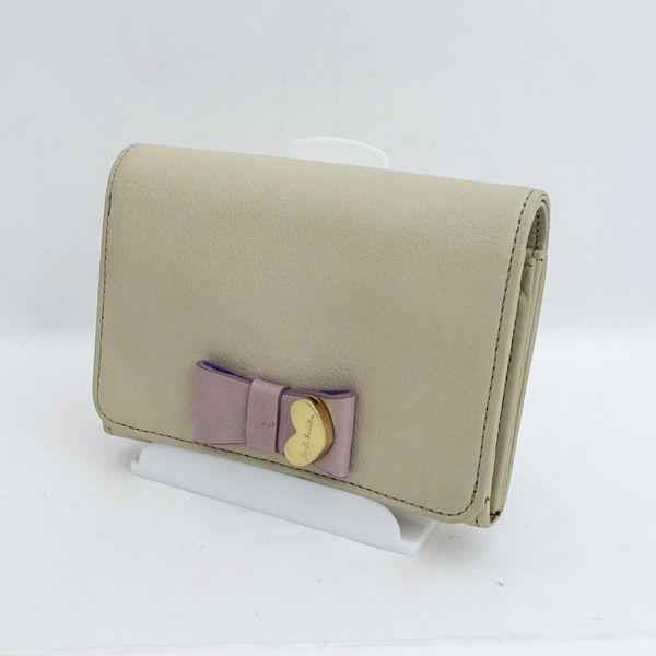 Paul Smith / ポールスミス ■二つ折り 財布 レザー ベージュ ピンク ブルー ブランド【ウォレット/wallet/コイン】 【中古】