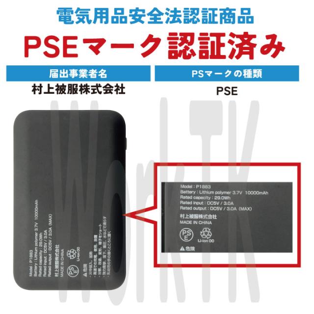 村上被服 モバイルバッテリー 10000mAh 春夏 小物 メンズ レディース 仕事服 作業着 おしゃれ mh-p1883