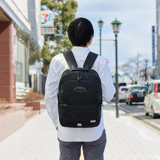 DSBKのバックパック。本シリーズのリュック3型では中間のサイズです。A4サイズに対応したメイン収納のほか、PCを入れるクッションポケットも装備するなど、機能性を追求したアイテムです。