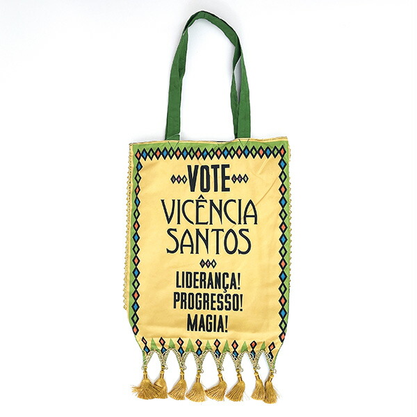 サントスの選挙フラッグをモチーフにしたトートバッグです!ビジューやタッセルなど、細部にこだわったデザインです。コーデのアクセントにしたり、サブバッグにしたり、使い方は色々♪