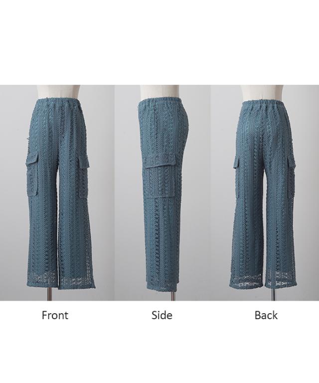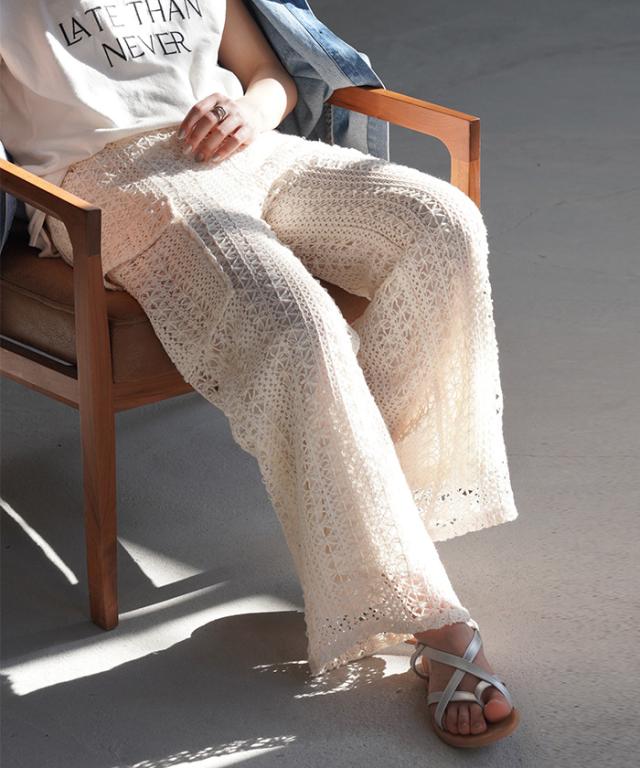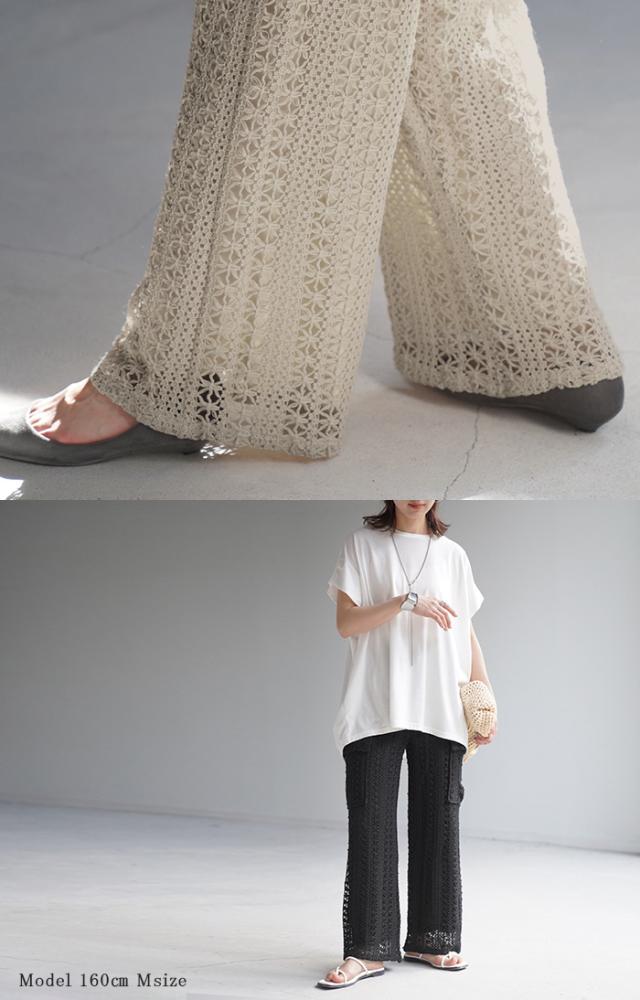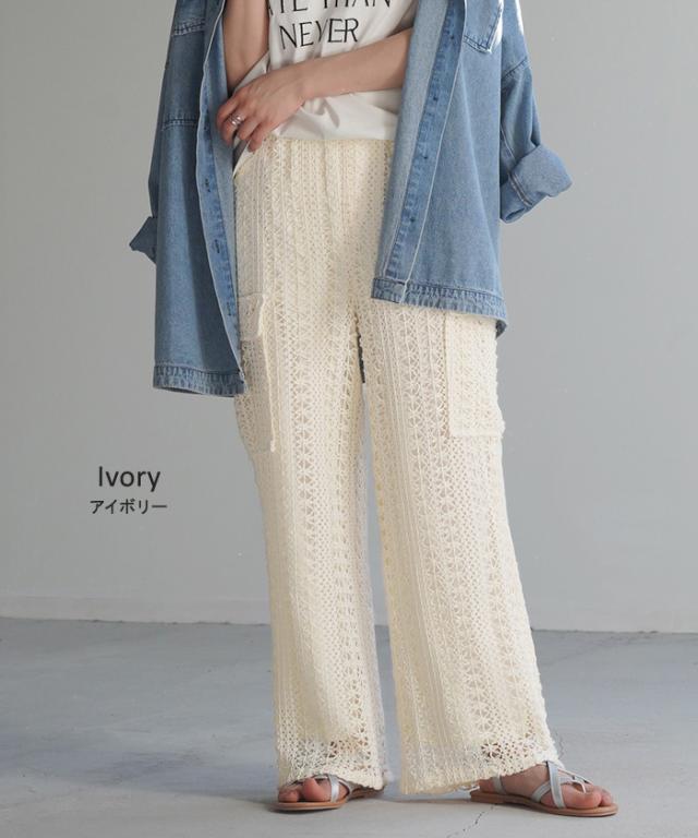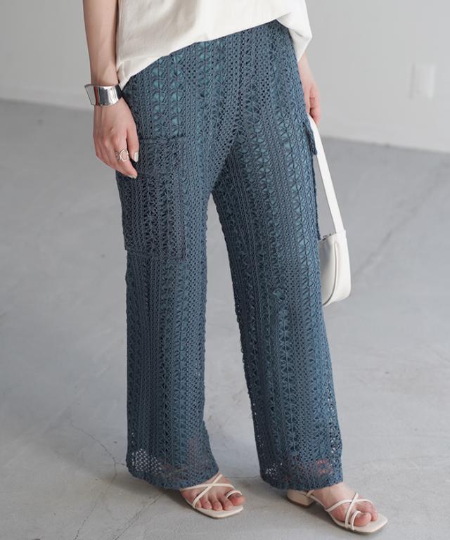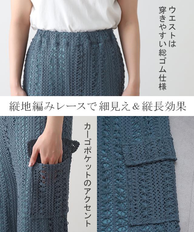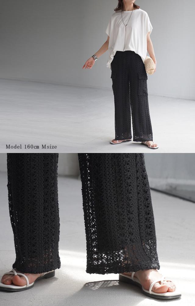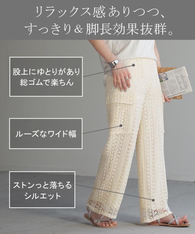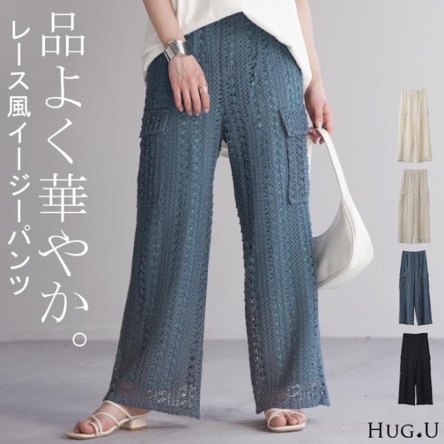 パンツ レース ニット ニットパンツ お洒落 レディース ワイド ワイドパンツ フレア フレアパンツ レギパン ロング ストレート カーゴ 花柄 ストレッチ ボトム 脚長 美脚 太め ボトムス ずぼん イージー ズボン ゴム シアー 黒 きれいめ 春 夏 HUG.U 秋新作