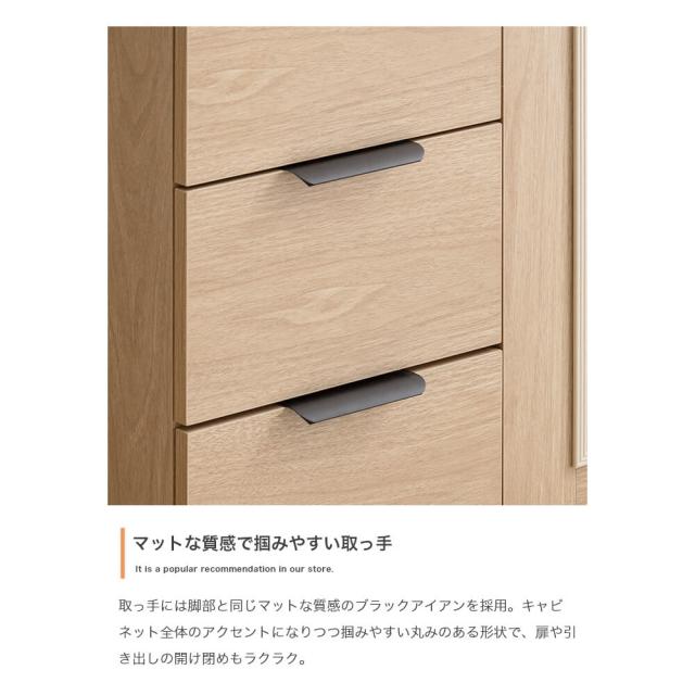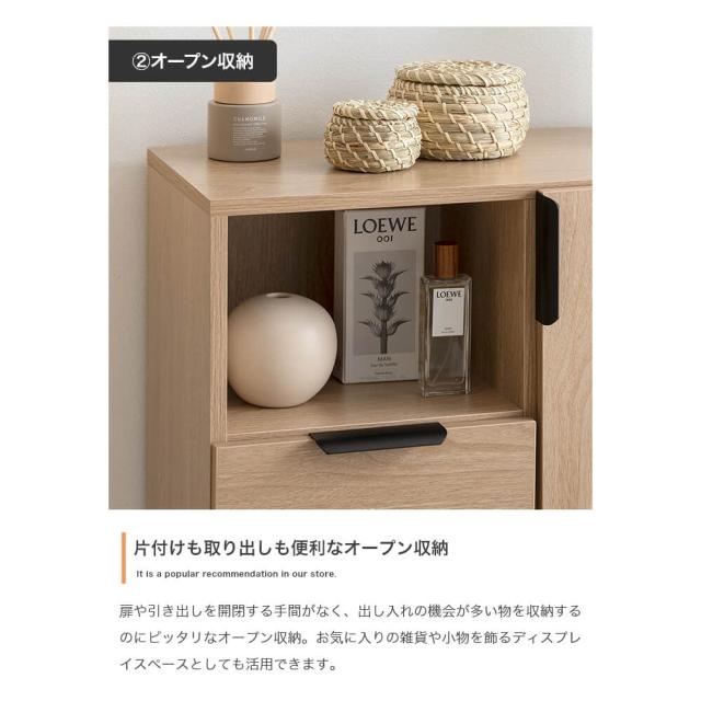 また、引き出し収納やオープン収納、扉収納内に可動棚を備え、さまざまなアイテムの収納が可能です。