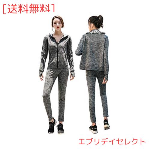 [NANE] サウナスーツ レディース【人気 芸能人が愛用 大量発汗】 ダイエットウェア ストレッチ 上下セット フード付き 洗濯可 ((セット