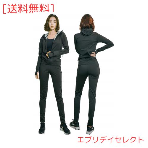 [NANE] サウナスーツ レディース【人気 芸能人が愛用 大量発汗】 ダイエットウェア ストレッチ 上下セット フード付き 洗濯可 ((セット