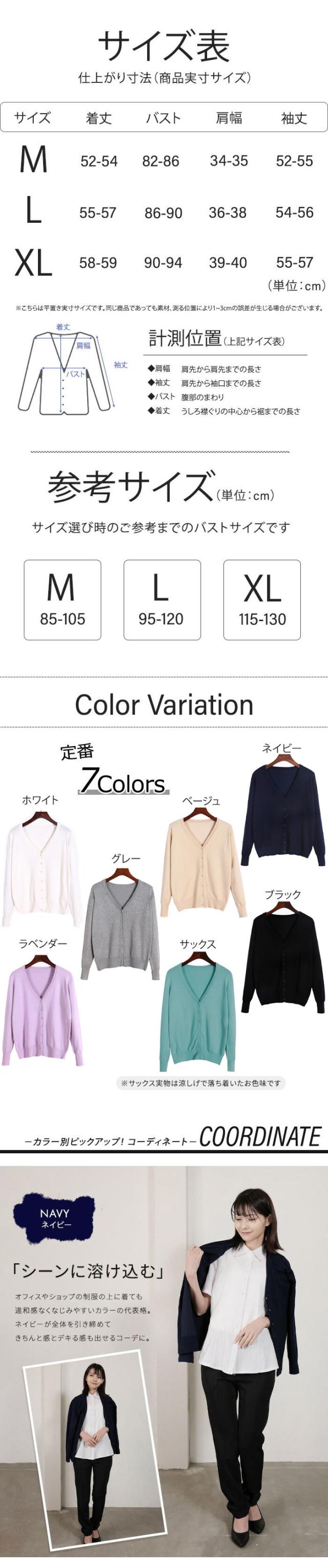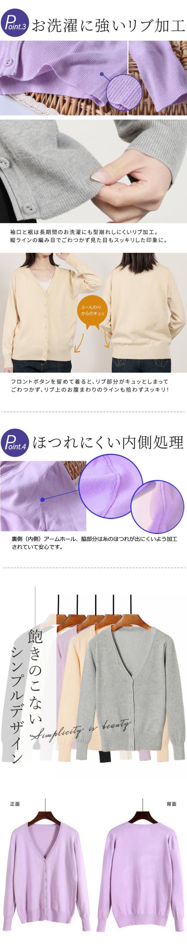 | 【関連キーワード】 カーディガン レディース 春 定番 シンプル ベーシック ニット 柔らかい 着心地 Vネック コーディネート バリエーション 大きいサイズ 20代 30代 40代 50代 60代 薄手 大人 ママ カジュアル ベージュ 肌色 ブラック 黒 グレー 灰色 ラベンダー 紫 ネイビー 紺 藍 ブルー 青 レモン イエロー 黄 白 ホワイト 袖あり 長袖 M L XL LL |